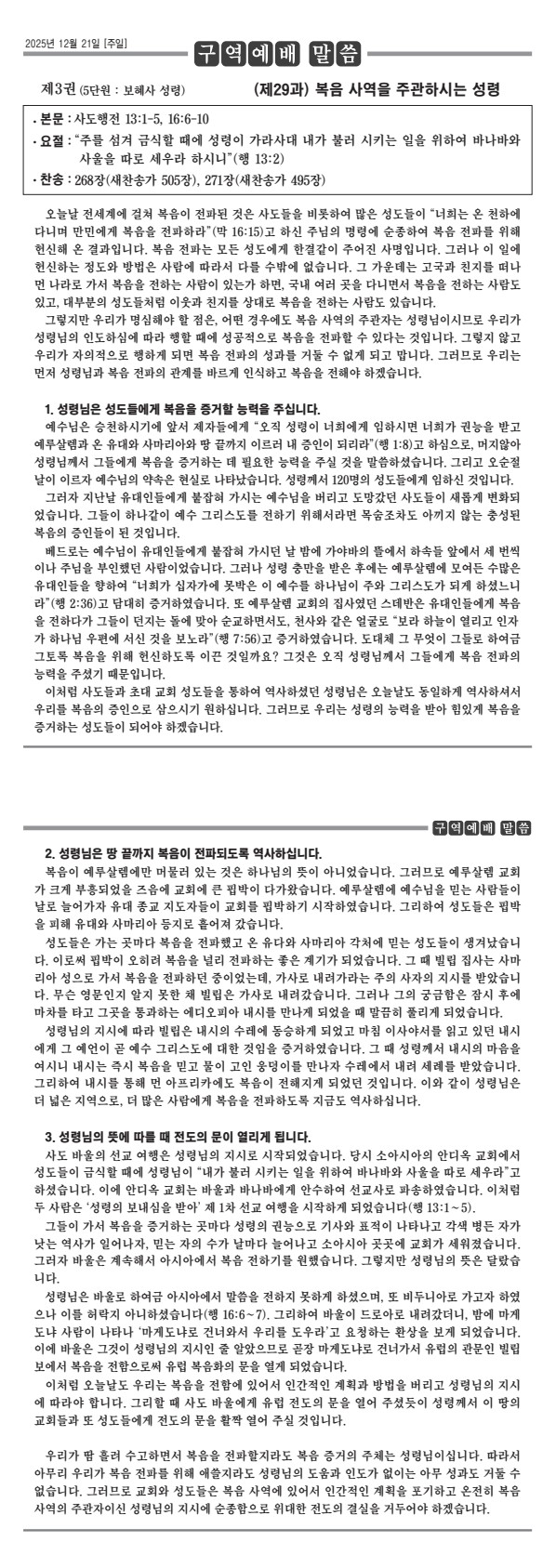 제목2025년 12월 21일 구역공과 제3권 (제29과) 복음 사역을 주관하시는 성령2025-12-20 20:22작성자gntc첨부파일20251221은혜와진리소식.pdf (12KB) pdf저장 jpg저장 목록 이전2025년 12월 28일 구역공과 제3권 (제30과) 홍수 심판과 노아의 믿음gntc2025-12-27다음2025년 12월 14일 구역공과 제3권 (제28과) 교회를 세우시는 성령님gntc2025-12-13 Powered by MangBoard | 망보드 스토어